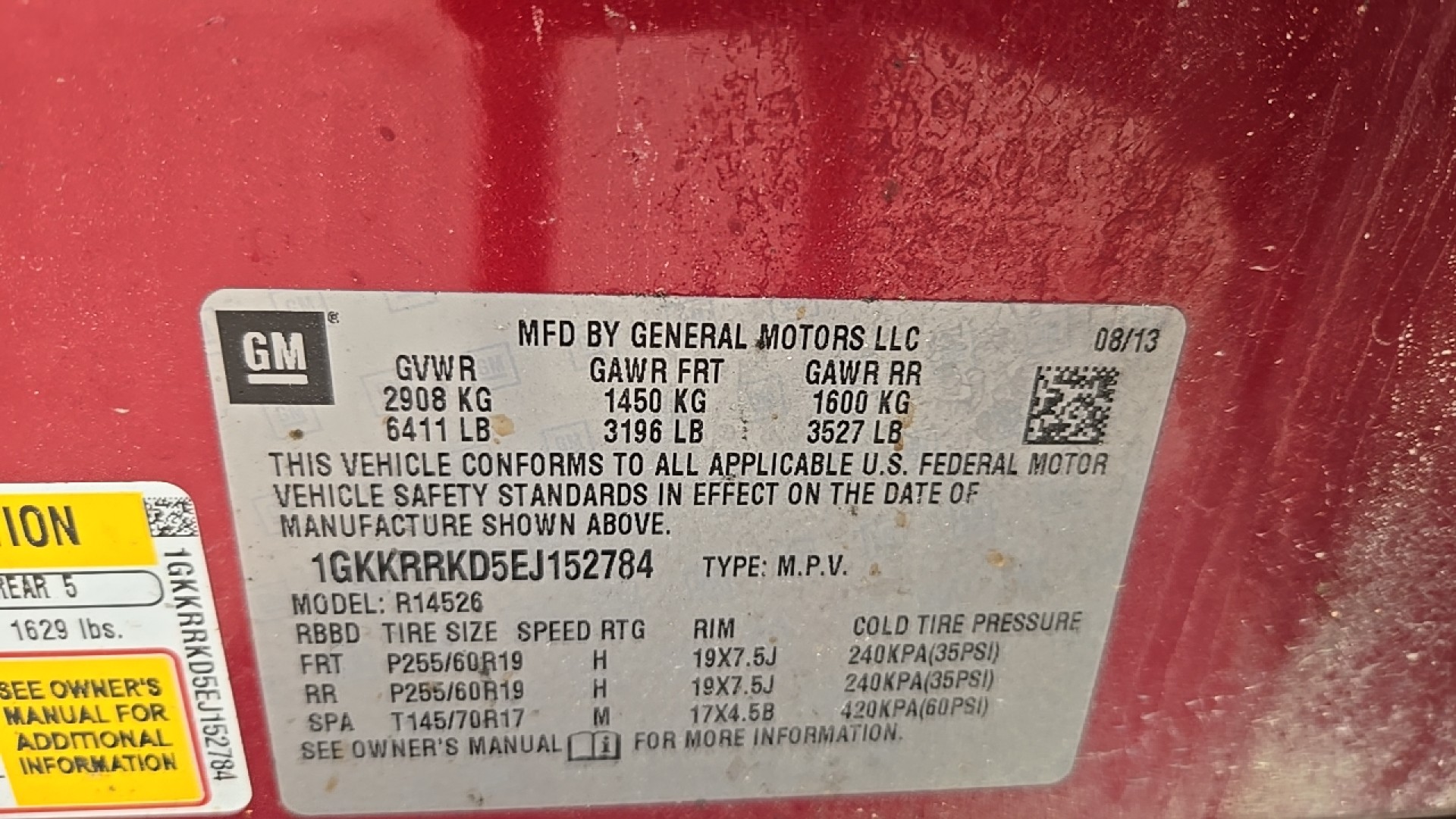Air conditioning, rear manual, Audio system feature, USB port, Audio system feature, USB port, dual charge only, located rear of center console, Body, power rear liftgate, Cruise control, electronic with set and resume speed, Defogger, rear-window electric, Door locks, power programmable with lockout protection, Floor mats, carpeted front, second and third row, removable, Glass, Solar-Ray deep-tinted (all windows except light-tinted glass on windshield and driver and front passenger side glass), Lighting, interior with theater dimming, cargo compartment, reading lights for front seats, second row reading lamps integrated into dome light, door-and tailgate-activated switches and illuminated entry and exit feature, Mirror, inside rearview auto-dimming, OnStar, 6 months of Directions and Connections plan includes Automatic Crash Response, Stolen Vehicle Assistance, Roadside Assistance and Turn-by-Turn Navigation (Visit onstar.com for coverage map, details and system limitations. Services vary by model and conditions.), Remote Keyless Entry, programmable with 2 transmitters, panic button and extended range, no remote start provisions, Requires Subscription, SiriusXM Satellite Radio is standard on nearly all 2014 GM models. Enjoy a 3-month trial to the XM All Access package, with over 150 channels including commercial-free music, all your favorite sports, exclusive talk and entertainment. With All Access, listen to everything, everywhere, in your car and on your computer, smartphone or tablet. (IMPORTANT: The SiriusXM Satellite Radio trial package is not provided on vehicles that are ordered for Fleet Daily Rental ("FDR") use. If you decide to conti, Steering column, tilt and telescopic with brake/transmission shift interlock, Steering wheel, leather-wrapped with (UK3) steering wheel mounted audio controls, Theft-deterrent system, vehicle, PASS-Key III, engine immobilizer, Universal Home Remote includes garage door opener, 3-channel programmable, Visors, driver and front passenger, padded with cloth trim, color-keyed and illuminated vanity mirrors, Windows, power with driver Express-Down, Wiper, rear intermittent with washer, Wipers, front intermittent with washers